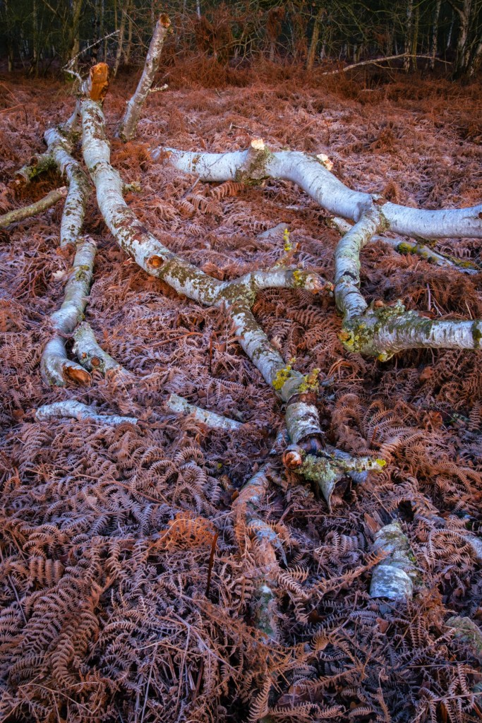 These photographs were taken alongside my study of The Fens more widely, often on the same day. This is because I would treat Holme Fen as a palette cleanser and recharge point from hours spent on the road, trying to capture openness. It allowed me to practice my work in colour and also sharpen my skills in woodland photography, which I have long admired.